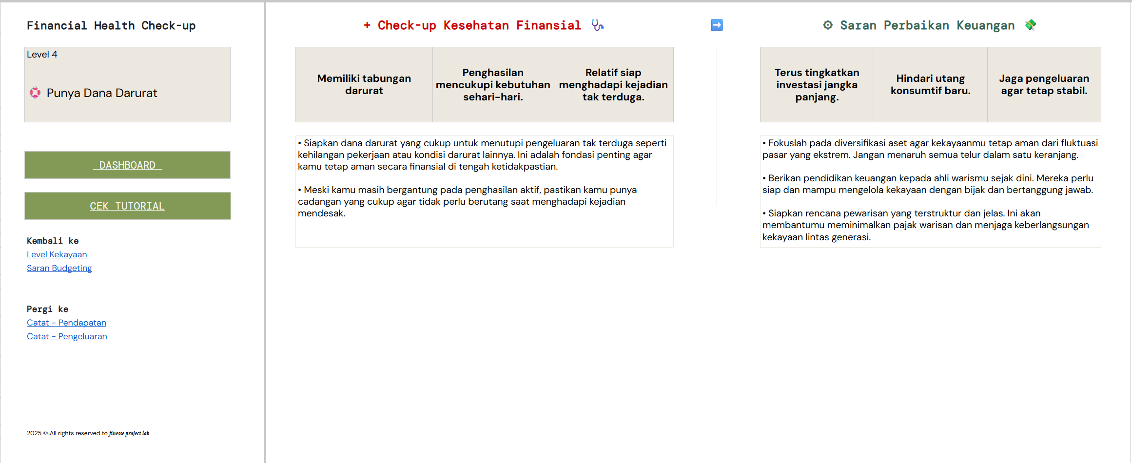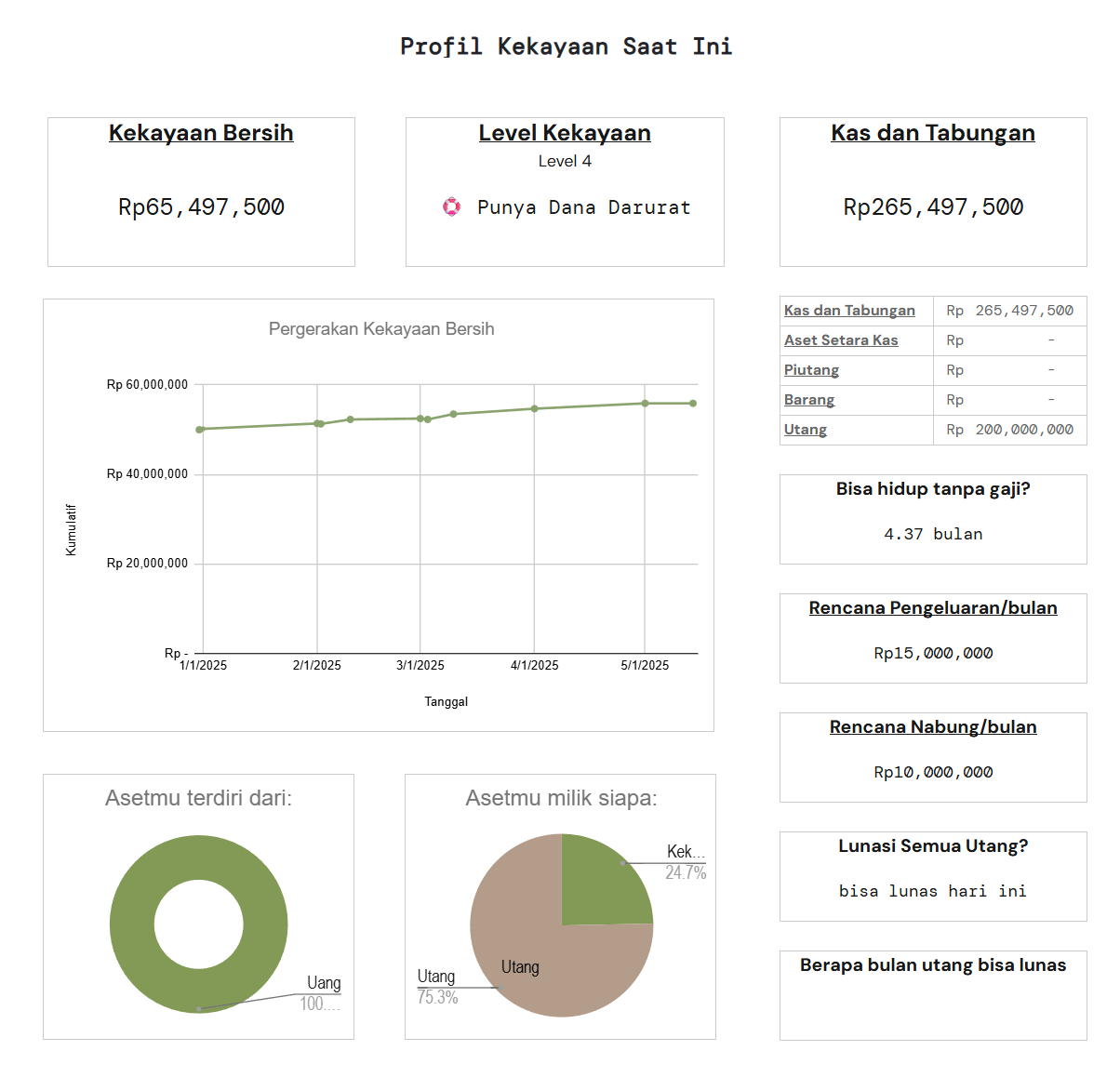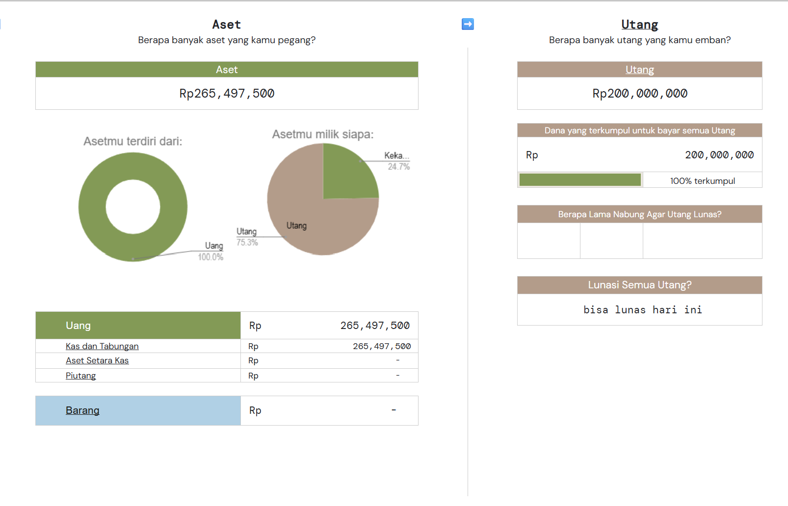 Kamu akan mempelajari kesehatan keuangan pribadimu langsung di dalam spreadsheet.